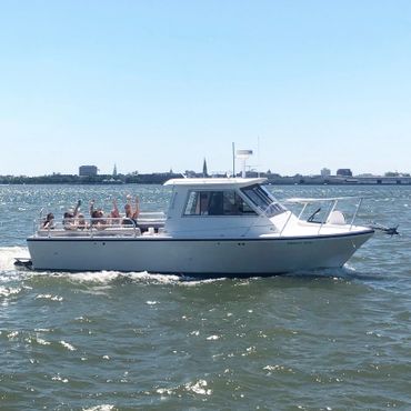 Get ready to have some fun because you are about to board the best private boat tour in Charleston! During your 3-hour tour you will witness the beauty that has made Charleston the #1 City in the World year after year. Impressive, but what is beauty without a little brawn! During the tour you will see the Yorktown, Fort Sumter, Fort Johnson, Fort Moultrie, Castle Pinkney, and the world renowned Battery and White Point Garden which housed the artillery during the Civil War. If you think all of that sounds amazing, just wait until you see the sunset. Experiencing the Charleston sunset from the water will leave you breathless! After you catch your breath, the sunset will serve as the perfect backdrop for family portraits, engagements, you name it!